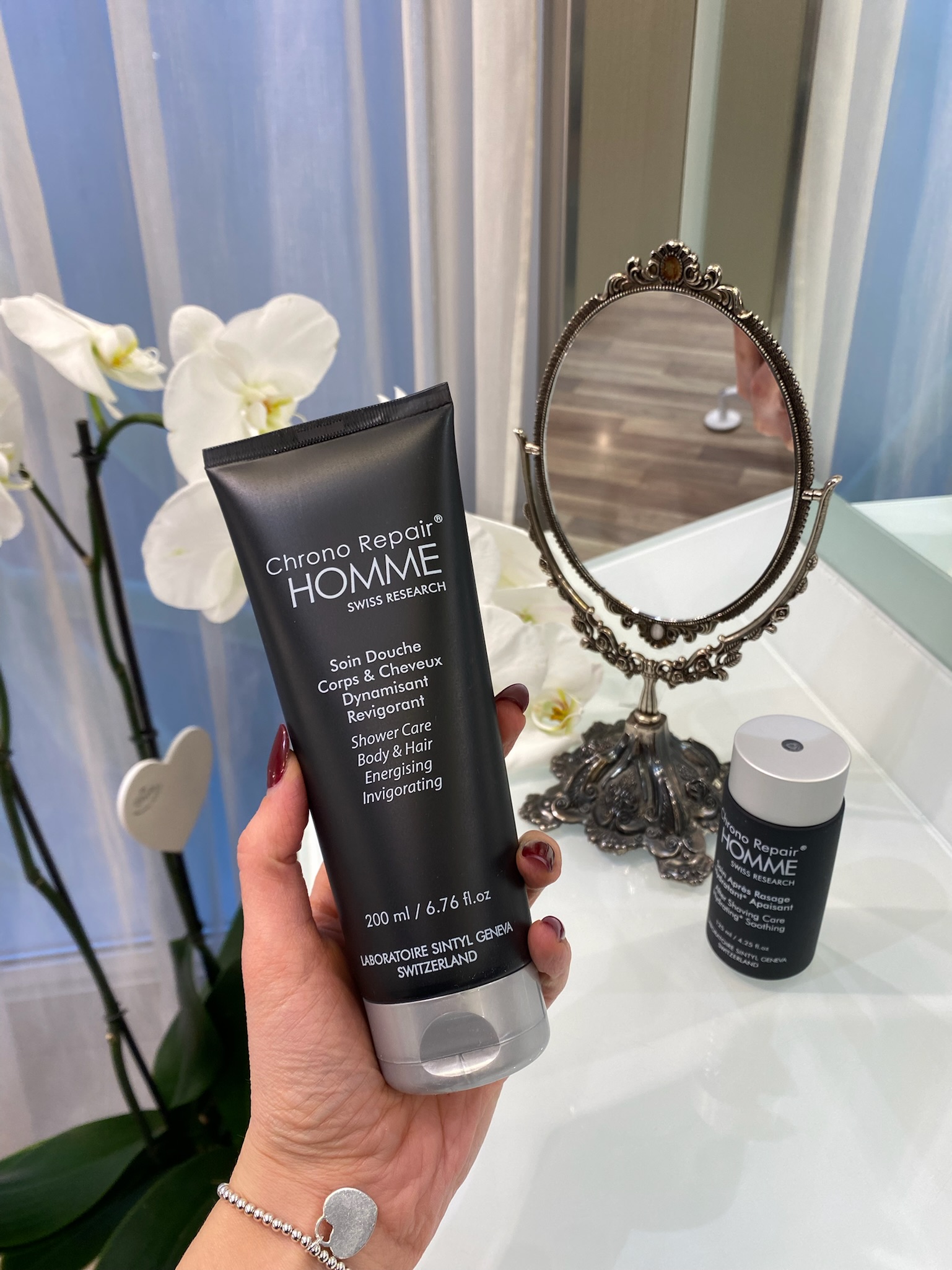 Il cofanetto è composto da: due prodotti indispensabili, crema dopo barba ANTI-AGE per la pelle del viso della linea for men di Physiodermie e il bagno doccia corpo e capelli tonificante e rinvigorente. Un trattamento ideale per l’igiene del corpo e dei capelli.